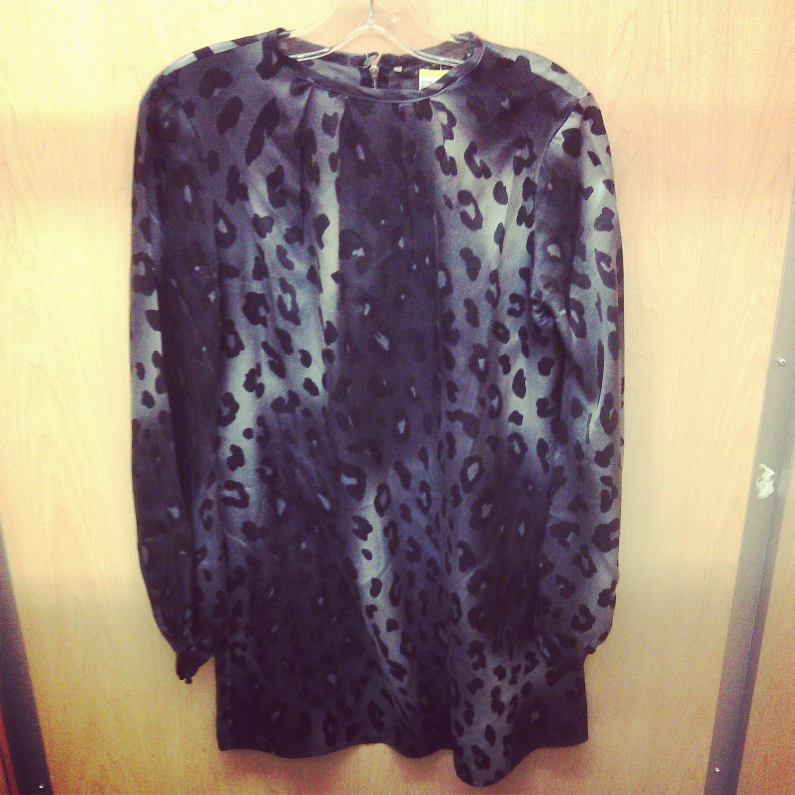 - Value Village 100% silk leopard print Zara dress, Guess draped sweater - these items were a steal and I guarantee the silk dress will get a ton of wear next fall (I really hate buying stuff out of season like this but it was too good to pass up!); I don't have a photo of the Guess sweater but the way it drapes in the front is very visually appealing and the grey & black go well with the rest of my wardrobe.